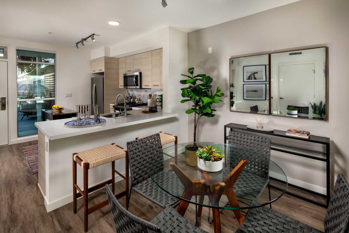 Catherine Santa Monica presents luxurious studio, one-, two-, and three-bedroom apartments for rent in Santa Monica, CA. Each floor plan includes an in-unit washer and dryer, a modern kitchen, and elegant wood-plank style flooring, offering a perfect blend of comfort and sophistication. Discover your ideal home in a vibrant coastal setting.